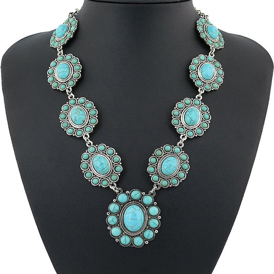 European And American SUNFLOWER Turquoise Necklace Vintage Bohemian Ethnic Style