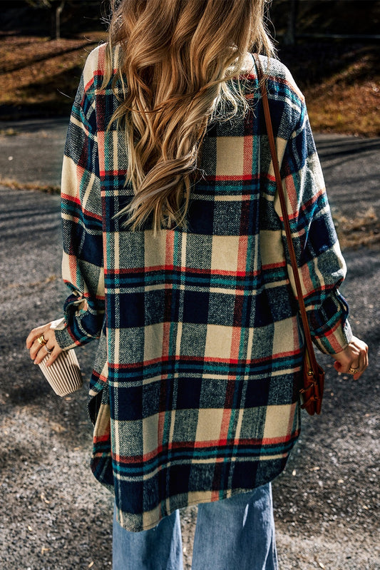 Plaid Pocketed Collared Neck Button Up Jacket