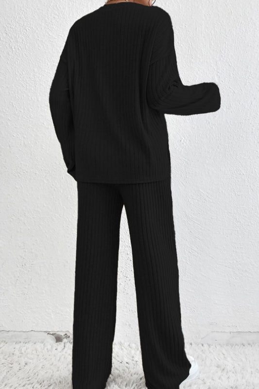 Basic Bae Full Size Ribbed High-Low Top and Wide Leg Pants Set