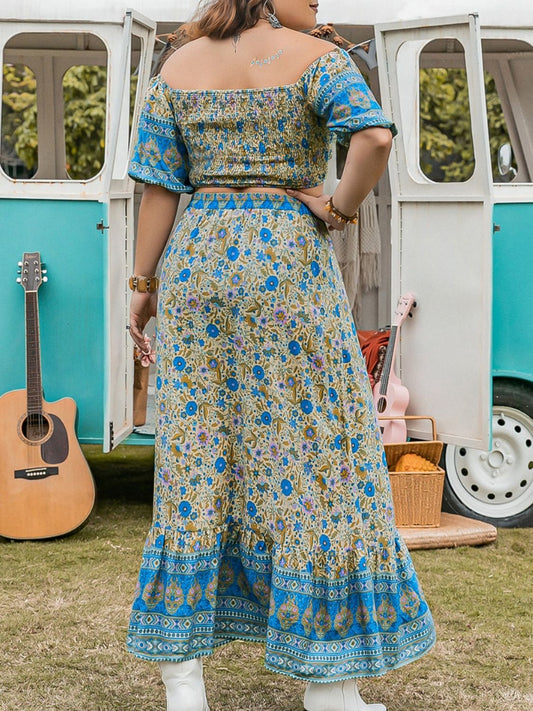 Plus Size Smocked Off Shoulder Top and Skirt Set