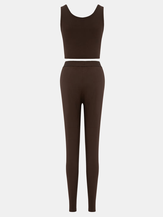 Round Neck Sleeveless Top and Drawstring Skirt Set