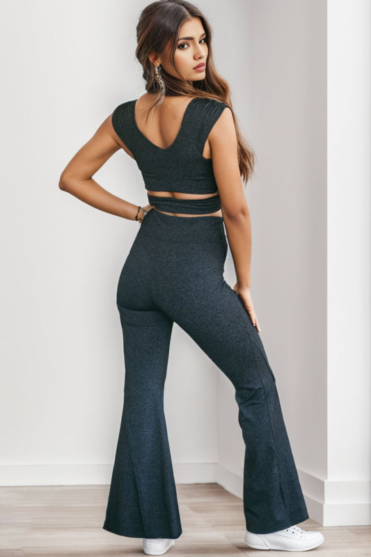 Pocketed V-Neck Top and Wide Leg Sweater Set