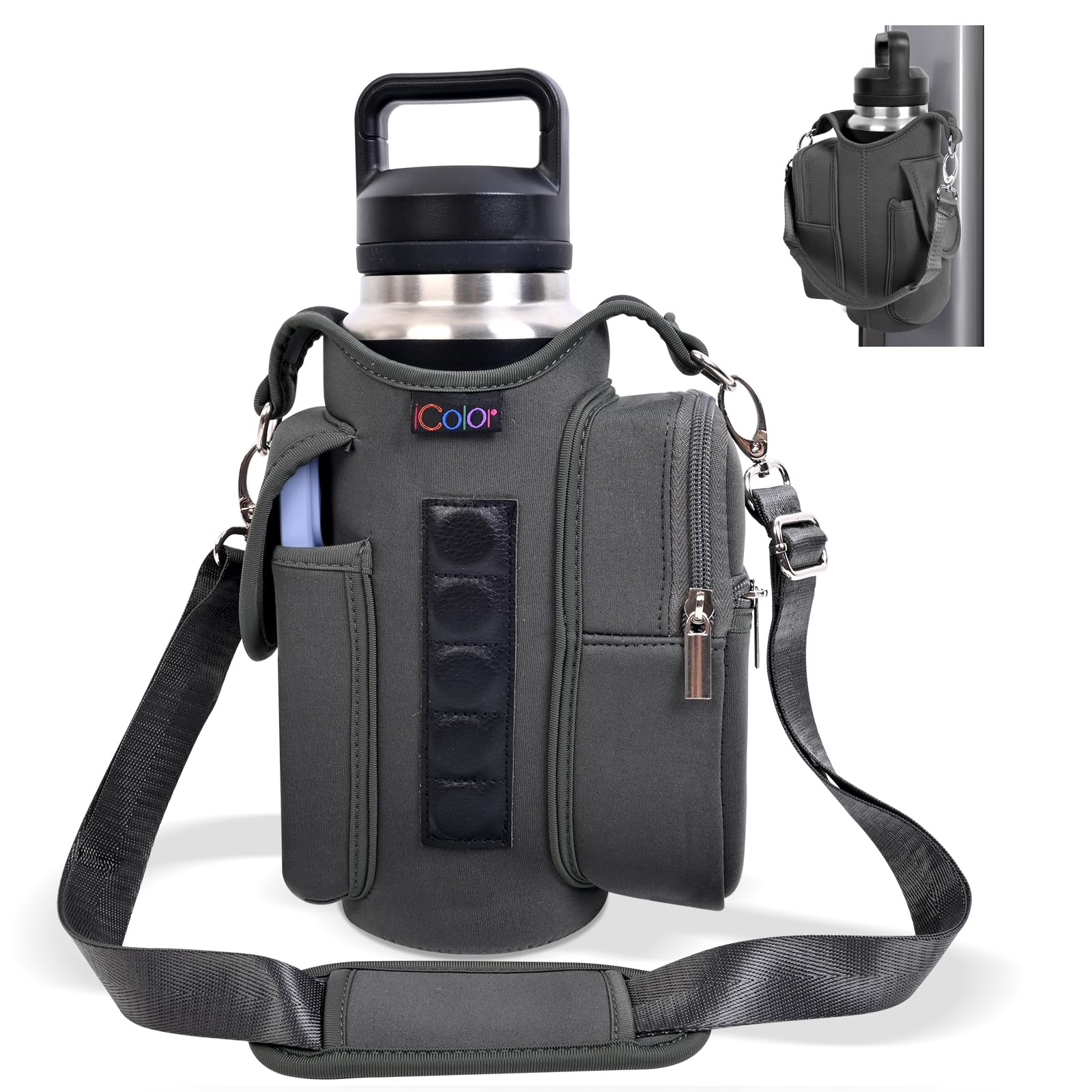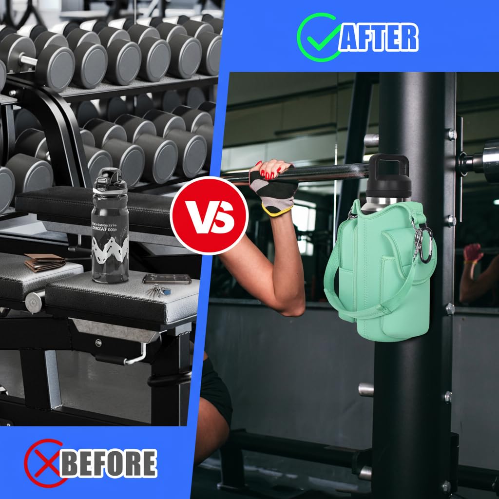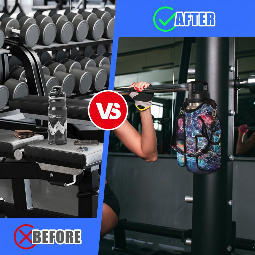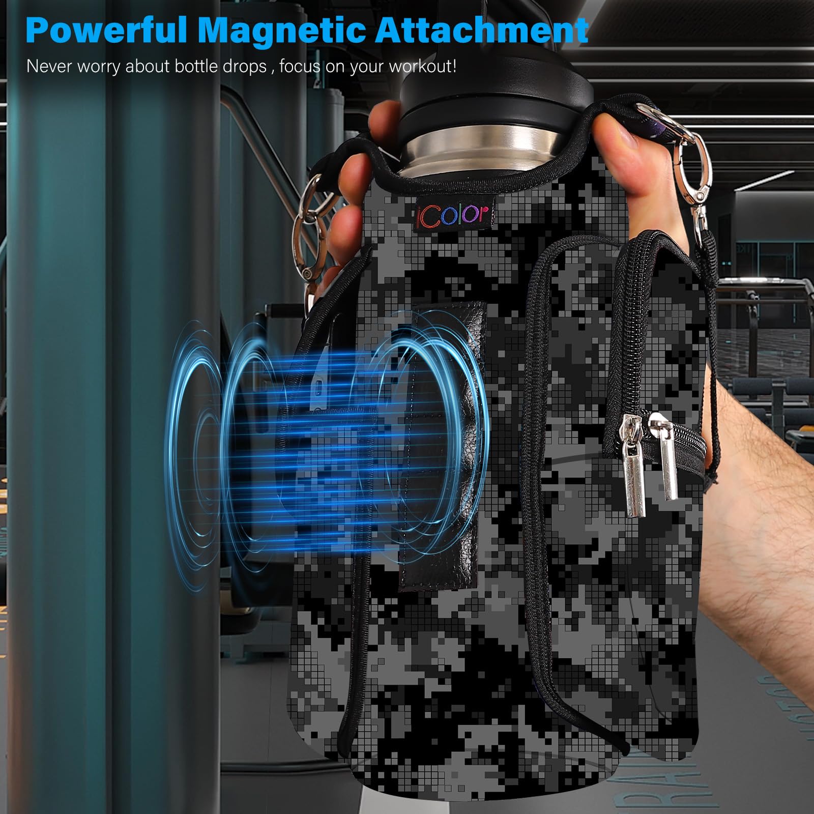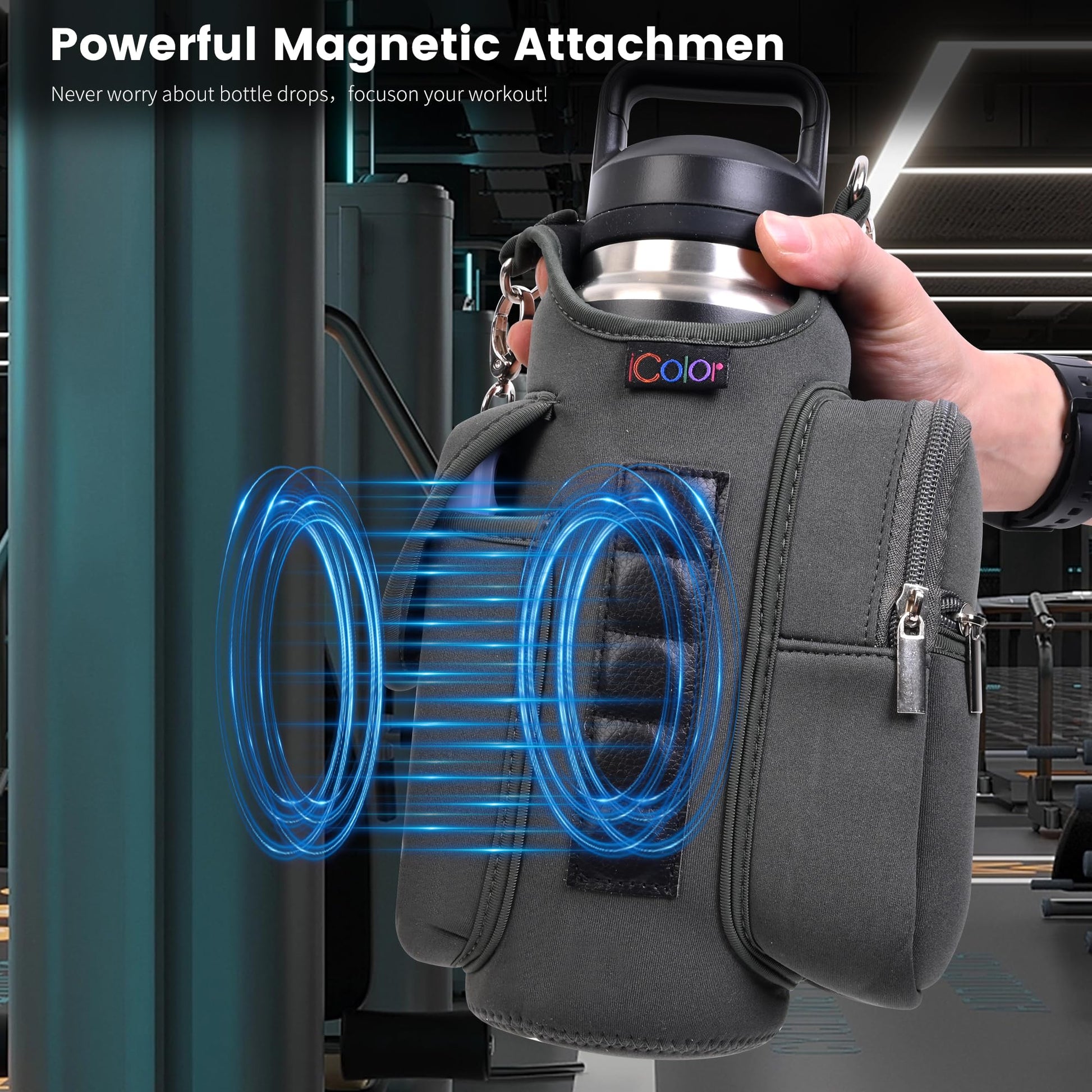 - Multi-Scene Use: Comes with a handle and adjustable shoulder strap for easy carrying, icolor Magnetic gym water bottle sleeve bag holder suitable for gym, basketball,outdoor activities, travel, walk the dog and more.great gym related gifts for gym lovers.