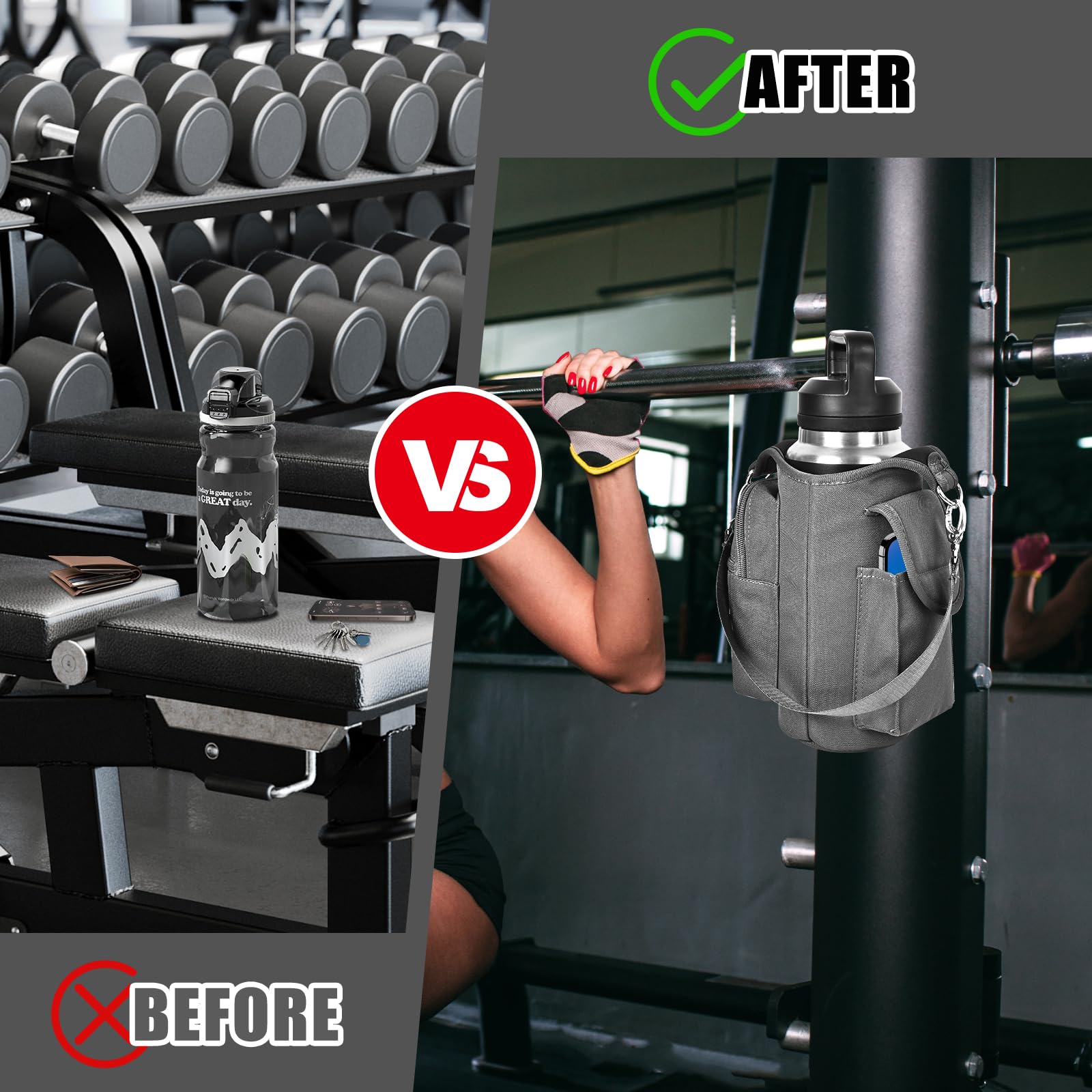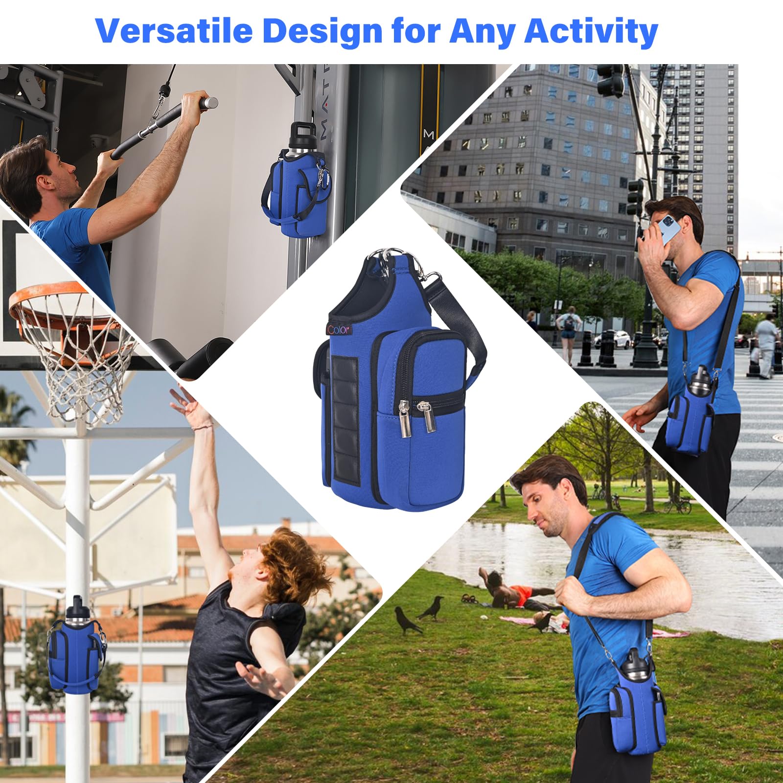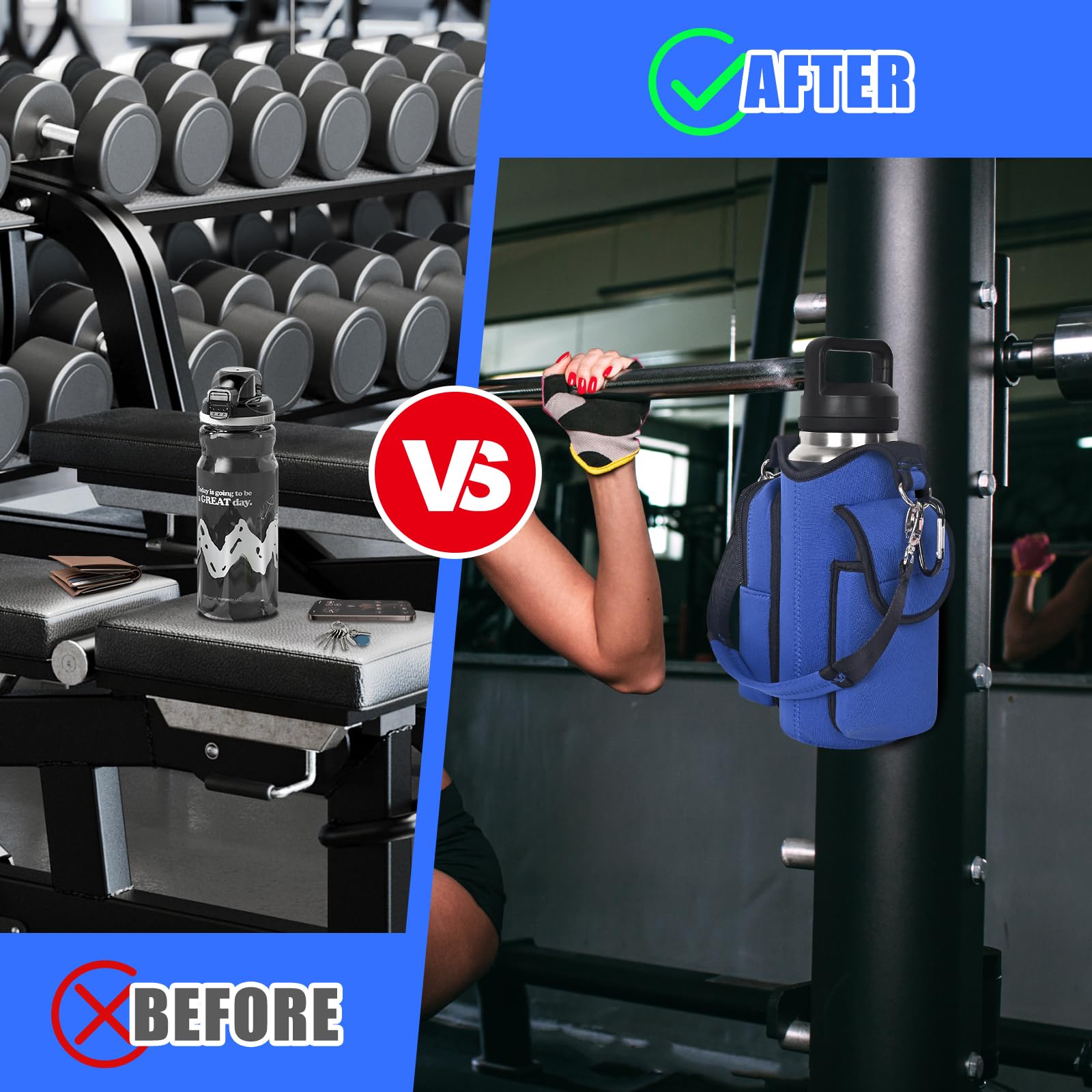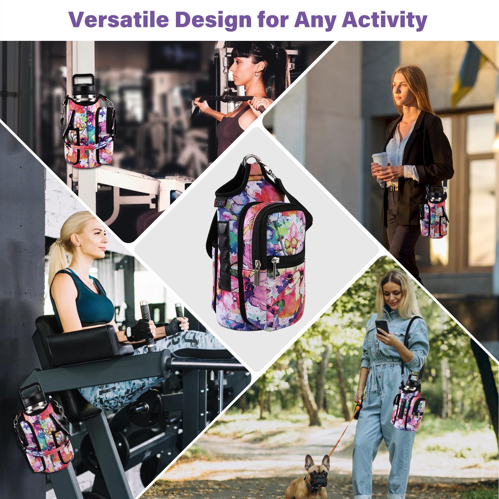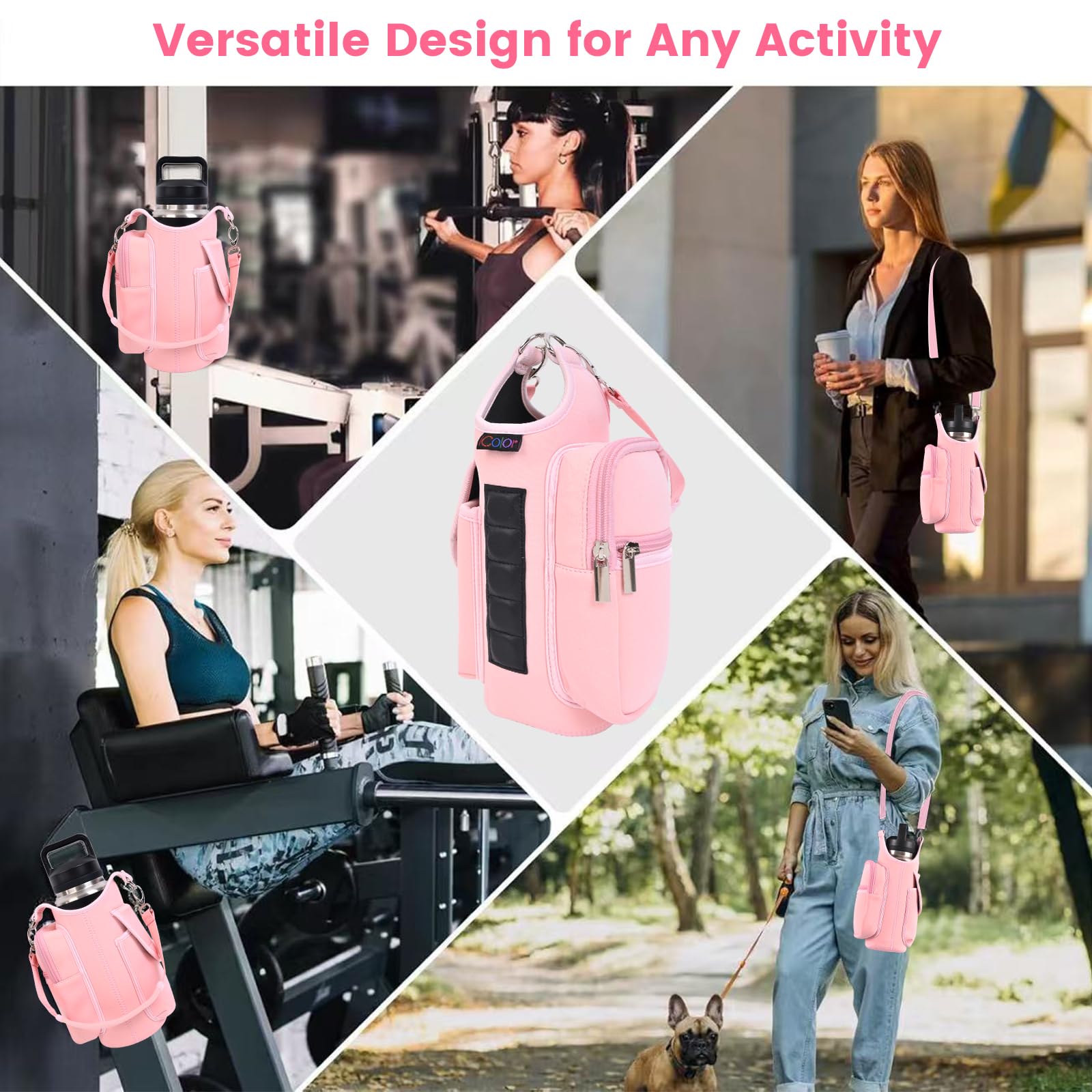 - Multi-Scene Use: Comes with a handle and adjustable shoulder strap for easy carrying, icolor Magnetic gym water bottle sleeve bag holder suitable for gym, basketball,outdoor activities, travel, walk the dog and more.great gym related gifts for gym lovers.