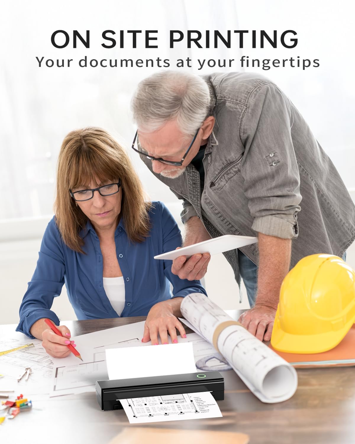 - Portable wireless printer for travel: The portable printer is equipped with a built-in 2600mAh rechargeable battery, which can print 160 sheets of 8.5" x 11" thermal paper after being fully charged. It weighs only 1.5 pounds and is compact in size. This ink-free portable printer can be easily carried in a backpack or briefcase! It is perfect for business travel, cars, small offices, construction sites, schools and homes. You can print documents, contracts, invoices and boarding passes anytime and anywher