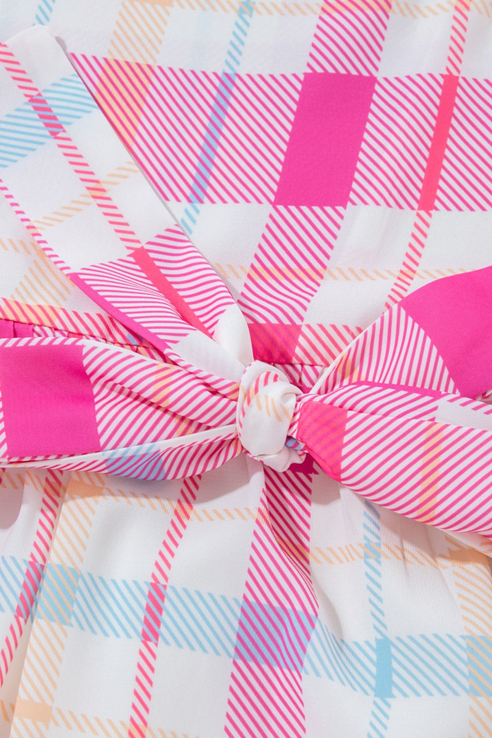 Tied Plaid Round Neck Short Sleeve Dress